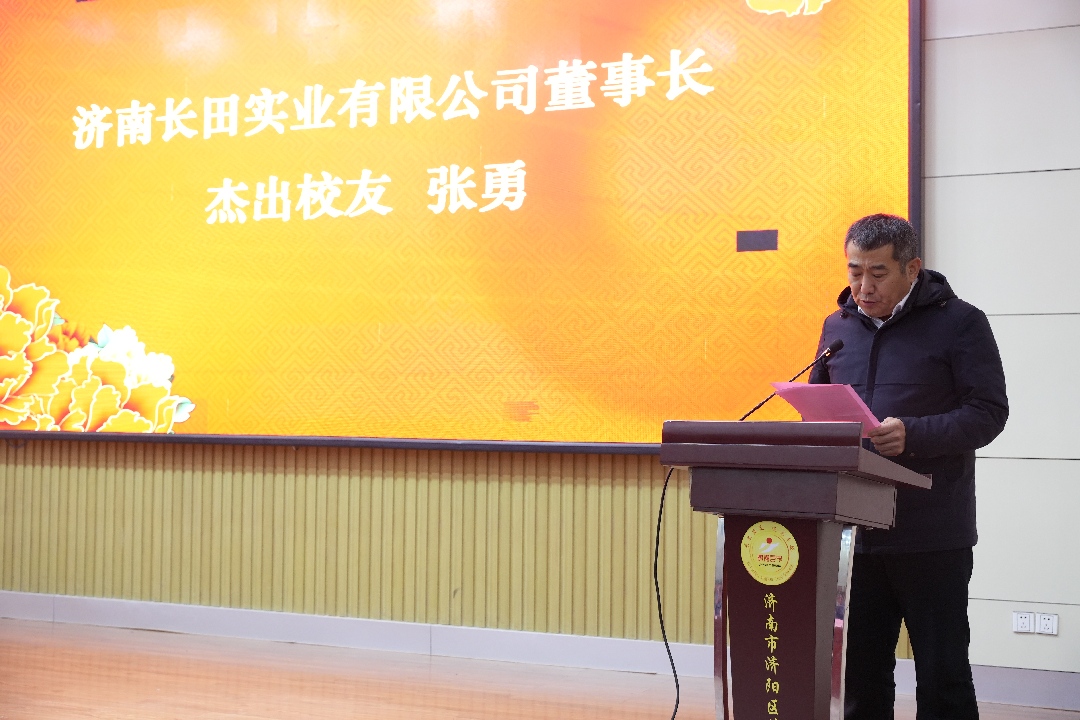 張總作為作為捐資代表講話,他講到,回到母校,就像回到了四十年前的中學時光,難忘孫秉鑫、安光茂兩位老校長的諄諄教導,感念趙而水、張端奎等老師的悉心培養(yǎng)。更讓他動容的是,濟陽一中承載著家族三代人的情感與寄托,父親曾在此執(zhí)教,兄弟三人追隨父親腳步在此求學,女兒也曾踏入校園,續(xù)寫著與母校的深厚淵源。結合自身經(jīng)歷,他為學子們分享了三點成長感悟:一是扎實根基方能茁壯成長,中學時代是積累知識、錘煉品格、培養(yǎng)韌性的關鍵時期;二是懂得感恩方能行穩(wěn)致遠,常懷感恩之心才能明晰方向、凝聚力量;三是胸懷家國方能格局開闊,要將個人理想融入國家發(fā)展洪流。他勉勵同學們傳承母校“永不滿足、追求卓越”的校訓精神,讓青春在奮斗中綻放光芒。